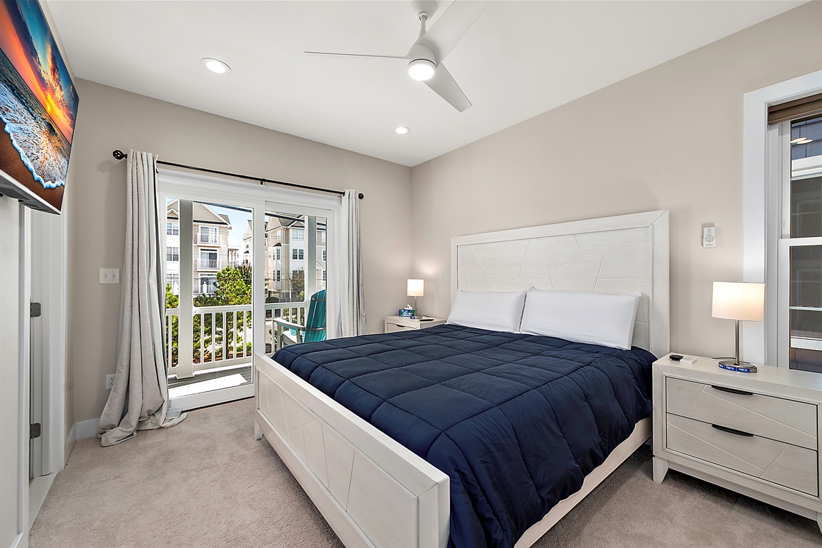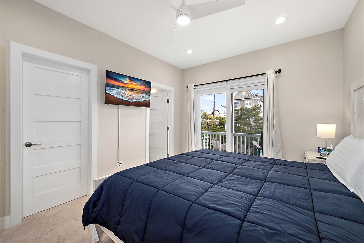 - Bedroom I: King Bed, Smart TV, Clothing Storage, Walk in Closet, Ensuite Full Bathroom with Shower, Balcony Access