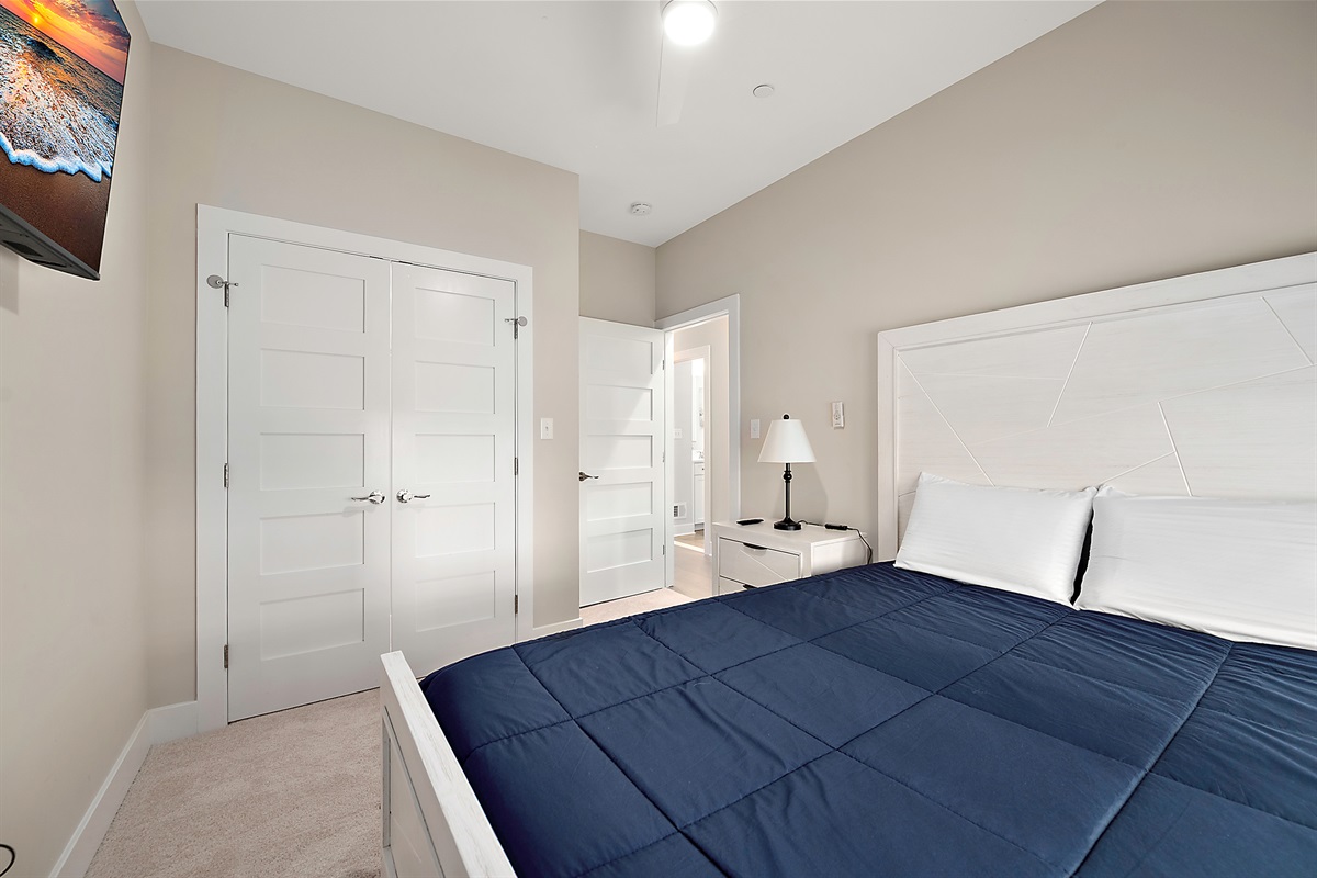 - Bedroom III: Queen Bed, Smart TV, Closet