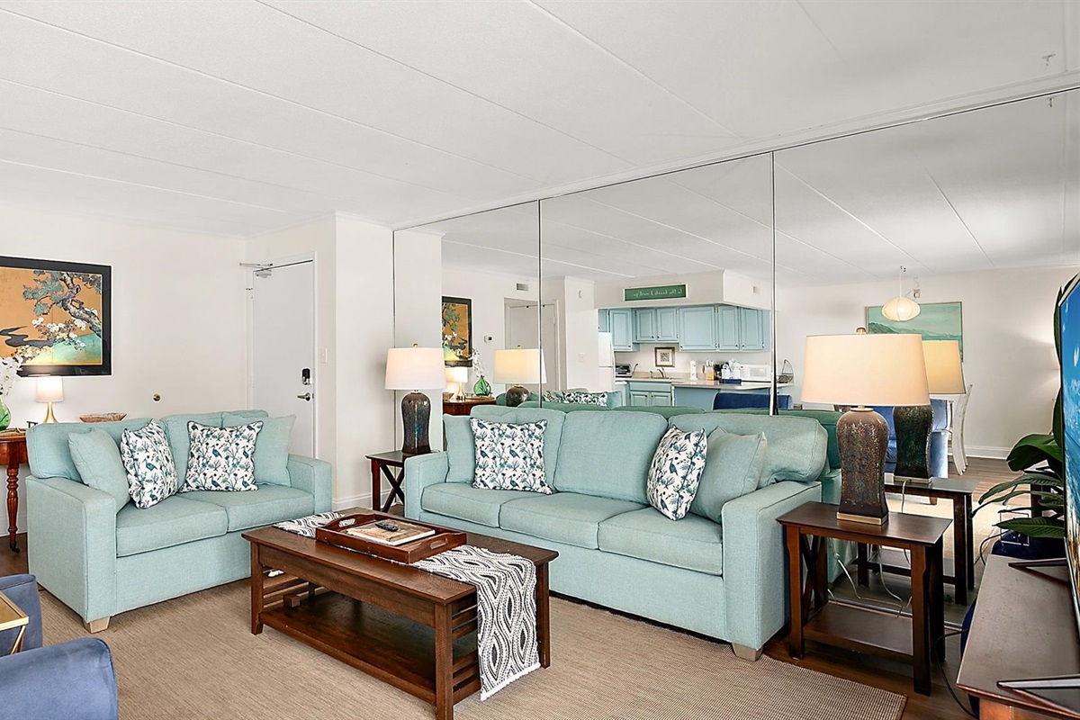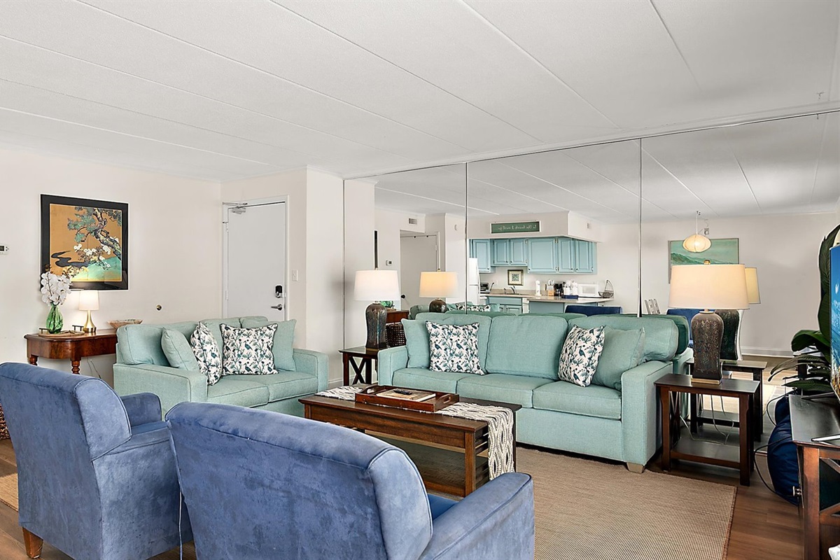 The open concept living space is a perfect location for family and friends to gather. Step outside onto the oversized balcony and enjoy a coffee in the morning while taking in the breathtaking views of the sparkling ocean. It's the perfect spot for sunrise and sunset views!