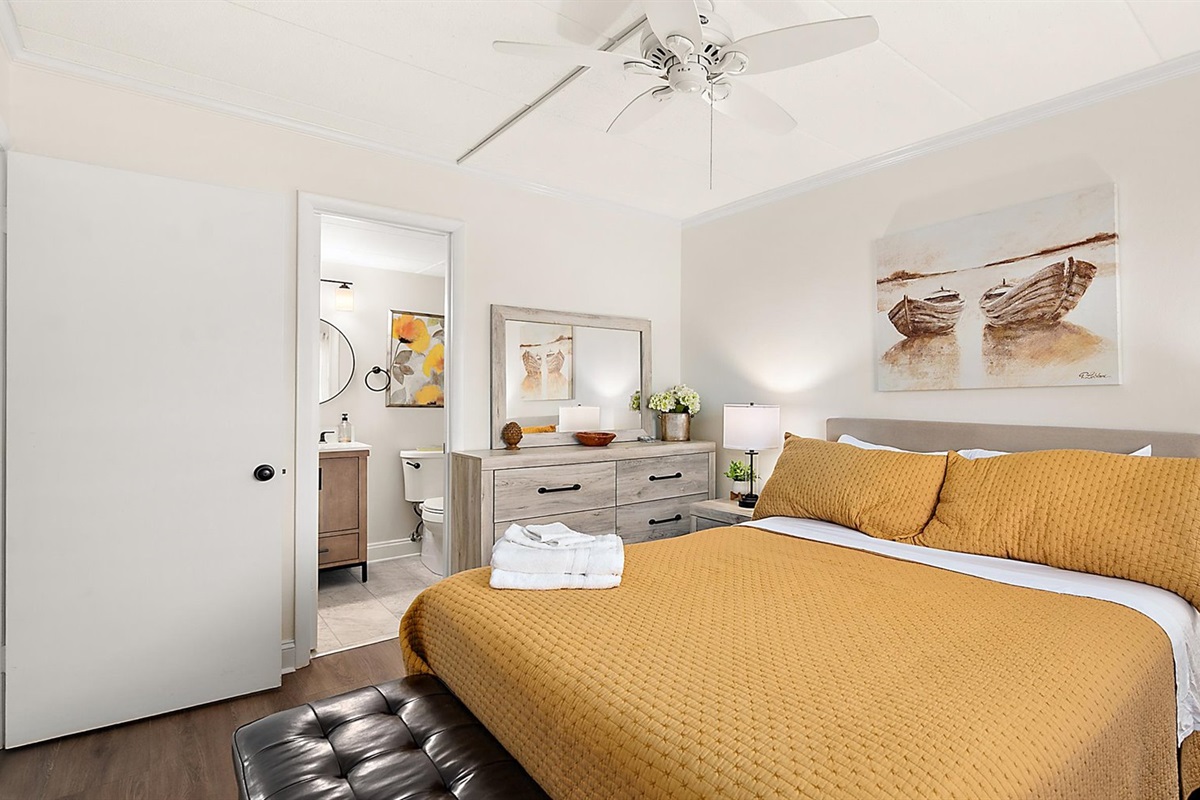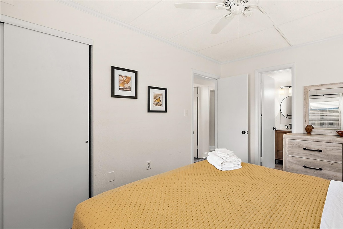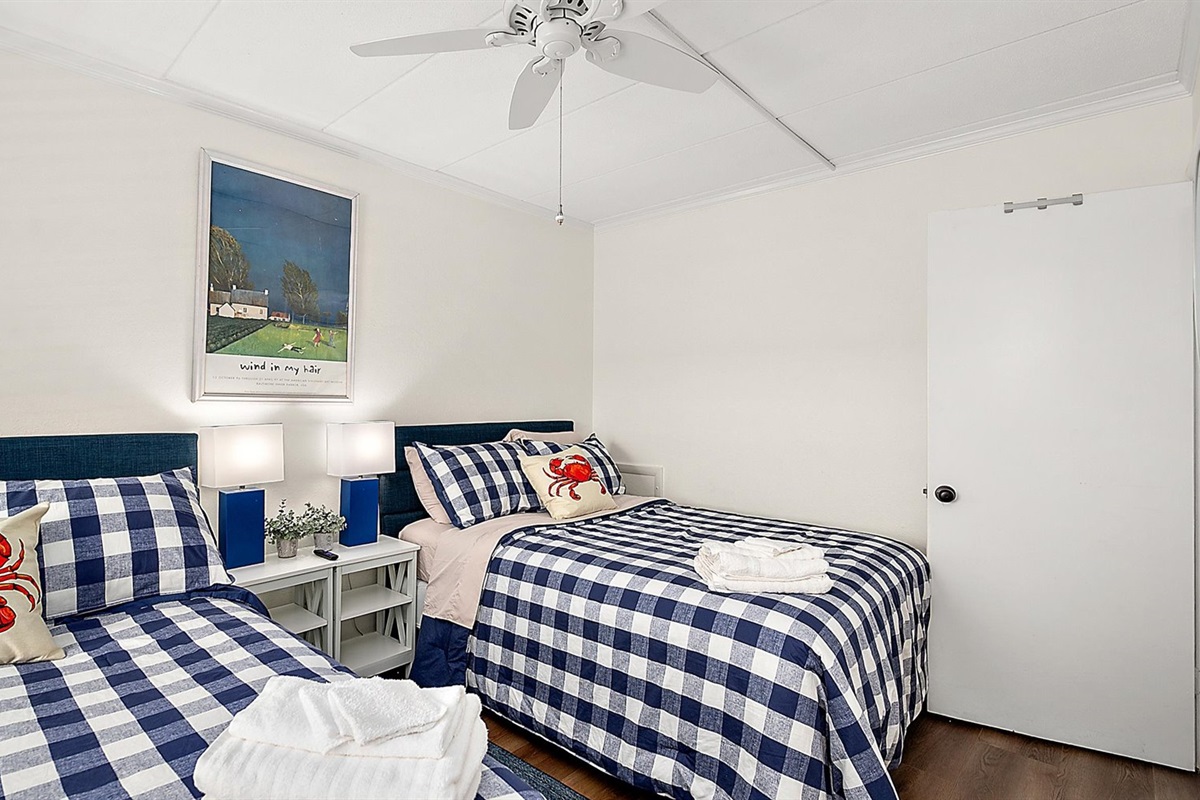 The master bedroom features a comfortable queen bed, and its own private ensuite bathroom. The second bedroom is furnished with two full beds, perfect for accommodating additional guests or the whole family. There is also a fold out sofa bed to accommodate additional sleeping arrangements. We provide all linens, towels and fresh sheets for every stay.